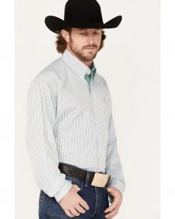 Cinch Men’s Stretch Multi Stripe Long Sleeve Button-Down Western Shirt White
