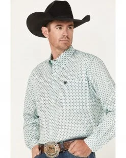 Cinch Men’s Square Teal Geo Print Long Sleeve Button-Down Western Shirt