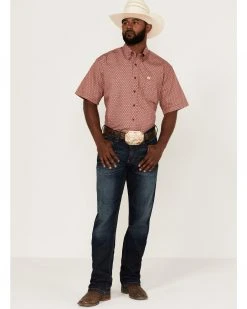 Cinch Men’s Star Burgundy Geo Print Short Sleeve Button-Down Western Shirt