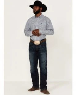 Cinch Men’s Stretch Navy Geo Print Long Sleeve Button-Down Western Shirt
