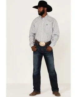 Cinch Men’s Stretch Red & White Plaid Long Sleeve Button-Down Western Shirt