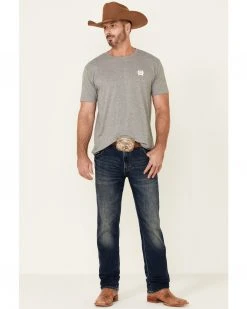 Cinch Men’s Grant Medium Stonewash Broken Twill Performance Stretch Relaxed Bootcut Jeans Indigo